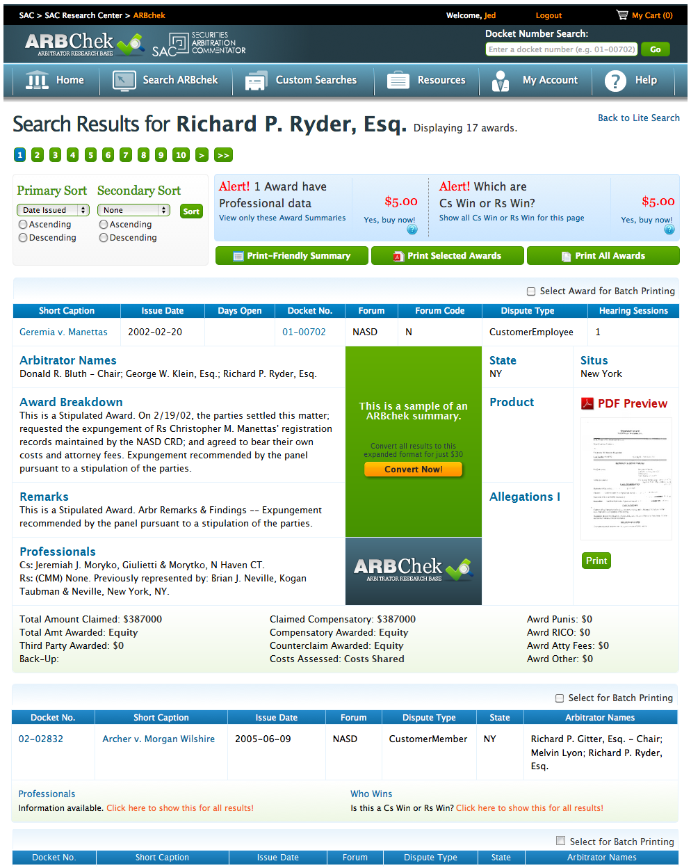 ARBchek LITE is a condensed version of the powerful search tool, ARBchek.  With ARBchek LITE, you have access to the entire ARBchek database of 50,000+ Award records.  Your results are shown in a simplified, easy-to-read chart format that can easily be turned into the full ARBchek summary.